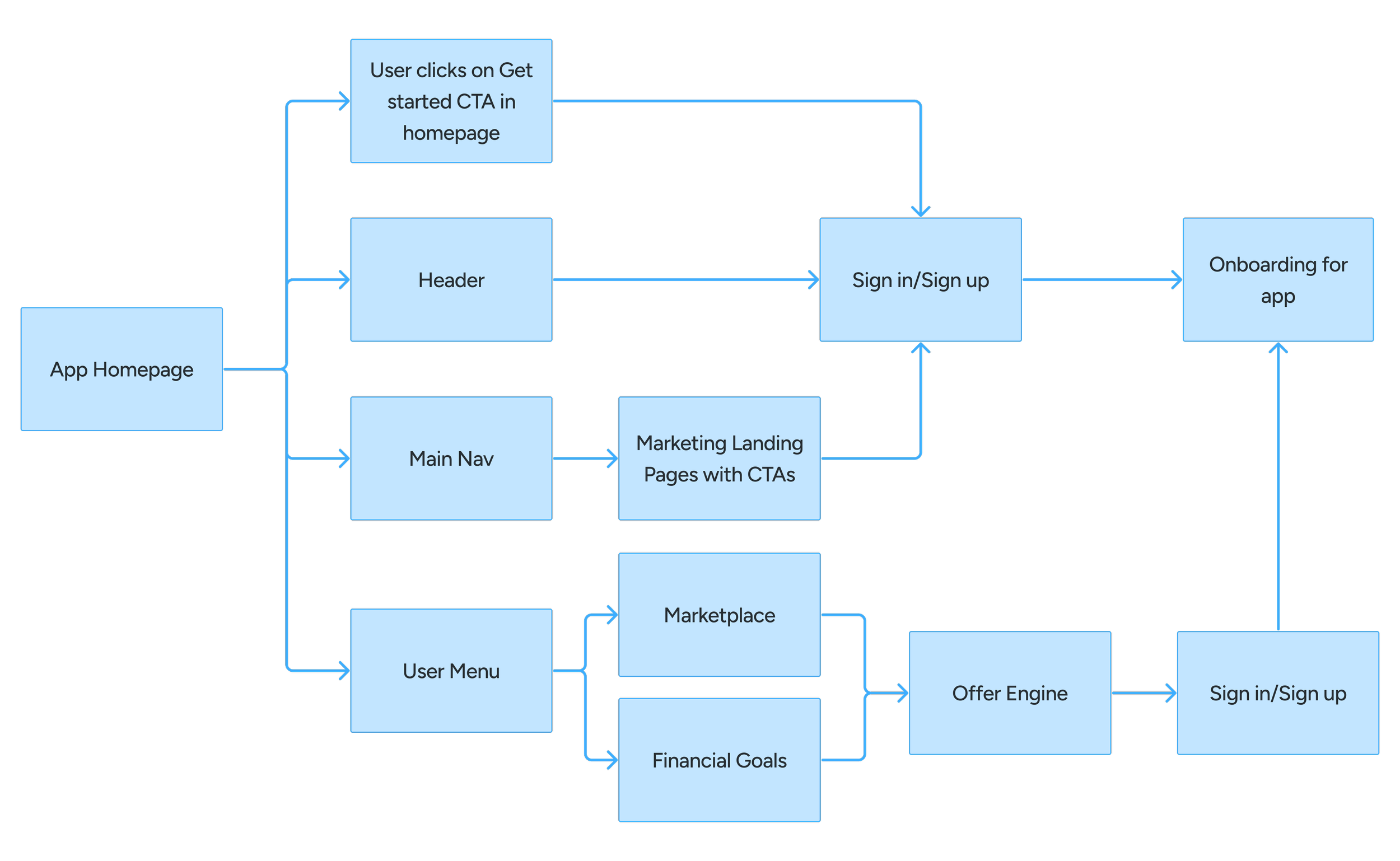 Mapped key user flows and behaviors to optimize transitions into the app