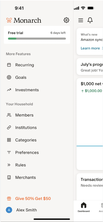 Researched competitor systems (e.g., MoneyLion, Monarch) to inform best practices