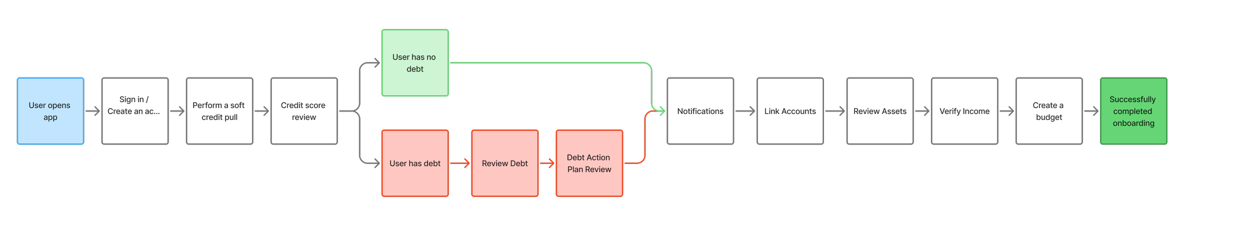 Users were required to complete the full onboarding flow (credit pull, linking accounts, budget creation) before accessing app features.